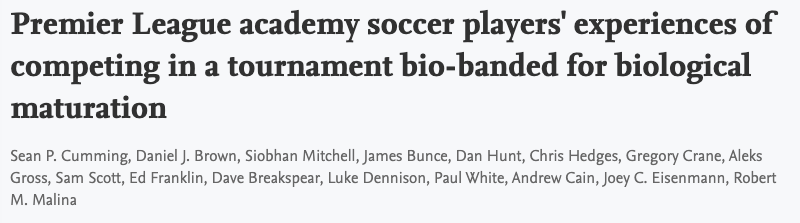 The First Peer-Reviewed Paper (2018): Premier League academy soccer players’ experiences of competing in a tournament bio-banded for biological maturation