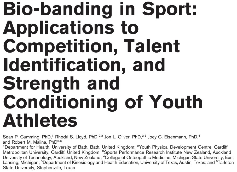 For those not familiar, bio-banding is a concept and practical tool of grouping individuals for training and/or competition by maturity status instead of chronological age. We have all seen U13 or middle-school sports, where early maturing boys (in most instances) dominate over the smaller, weaker, and slower later maturing boys. Bio-banding offers an approach to ‘even the playing field’ for practices and competitions, and also individualize strength and conditioning training based on maturity and biological age rather than chronological age or grade in school.