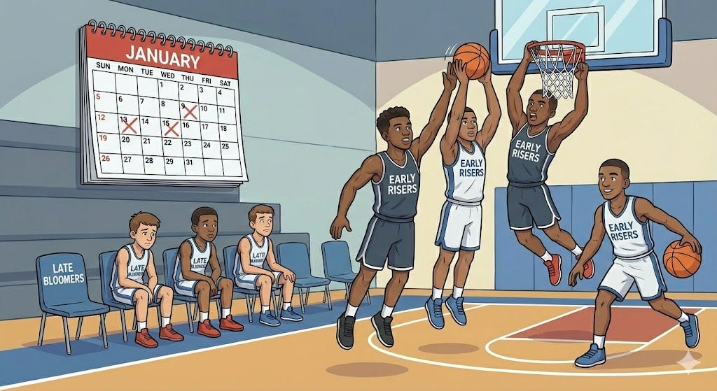The following two review papers suggest that the identification and selection of youth basketball talent is strongly influenced by relative age, body size and early biological maturity, which produces a bias toward early-developing players. Friends, we have heard this story before (see Fair Play: Overcoming Bias in Youth Sports Talent Identification).